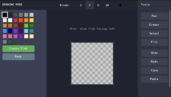 - Use the built-in drawing tool to design custom fish pixel-by-pixel